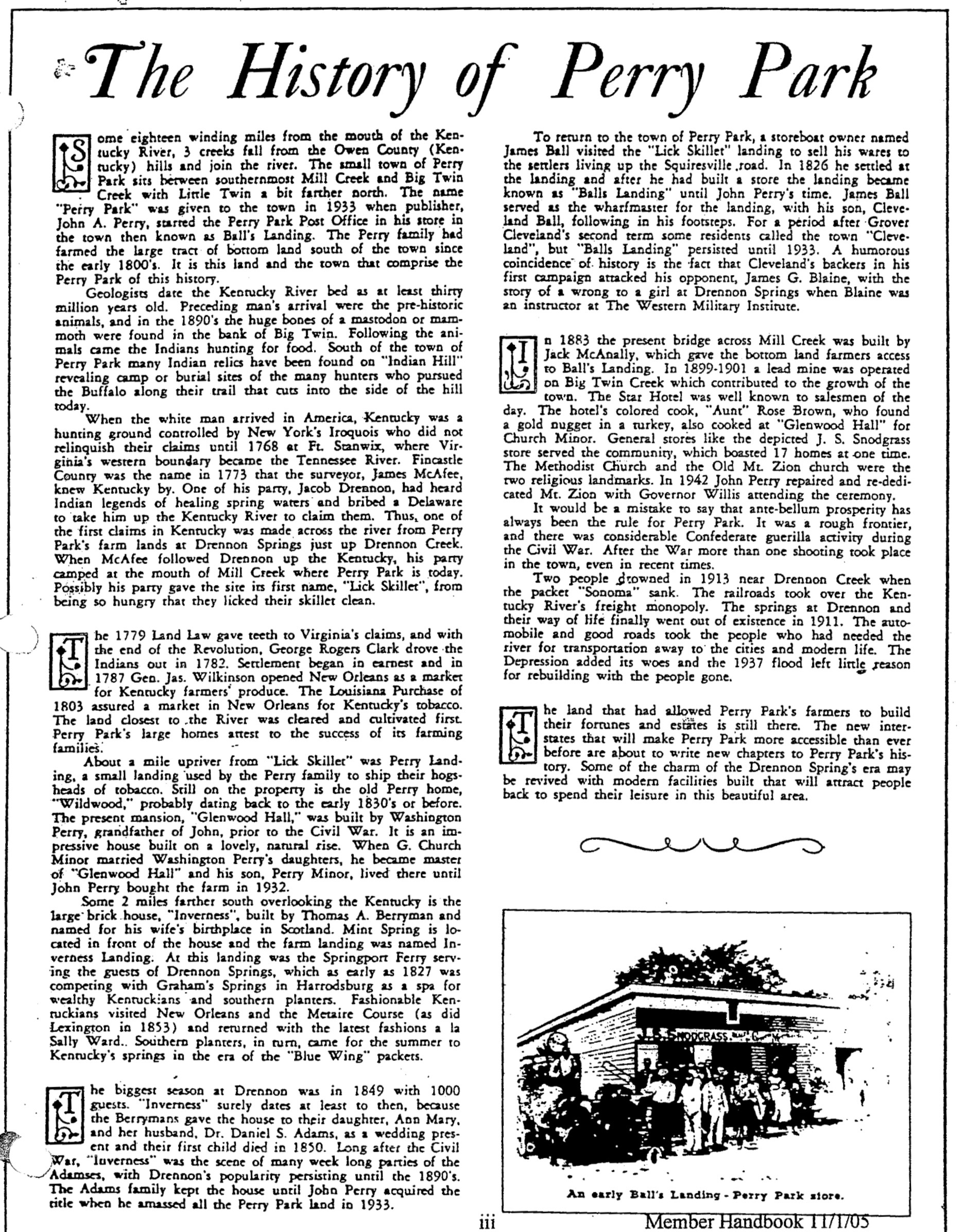 The Perry Park Resort Community is located along the Kentucky River, nestled in the wooded hills of Owen County and adjacent to the Perry Park Golf Resort. Community members can take advantage of the recreational amenities provided by its three lakes while enjoying the plentiful wildlife in the area including frequent sightings of bald eagles.